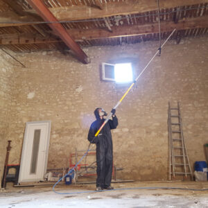 Avant de faire venir un expert, vous pouvez procéder à quelques actions simples en fonction des dégradations constatées. Si les poutres manquent d’éclat, vous pouvez tout d’abord les sabler pour leur redonner un aspect naturel ou les blanchir à l’aide d’une peinture micro-poreuse.