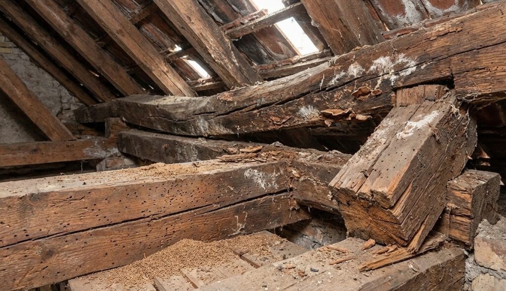 Quand plusieurs éléments maîtres sont touchés simultanément, la continuité structurelle n’existe plus. Les attaques d’insectes sur arbalétriers et pannes principales justifient, à ce titre, un remplacement. Un diagnostic approfondi et des traitements ciblés restent utiles, voilà comment décider sereinement traiter ou remplacer. Les assemblages bâillants et appuis écrasés indiquent, dès lors, une rupture de trajectoires d’efforts.