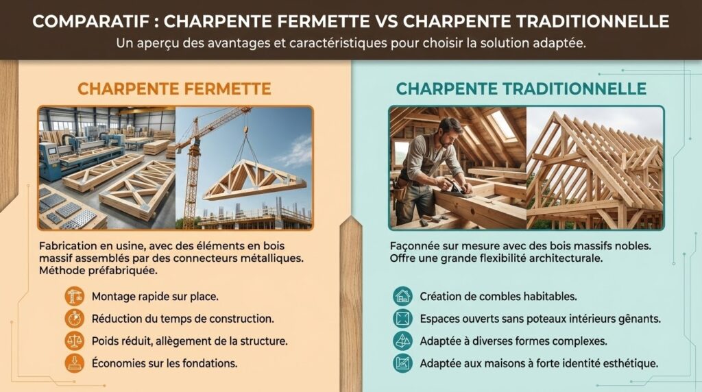 Évaluer les avantages techniques de la charpente fermette et traditionnelle